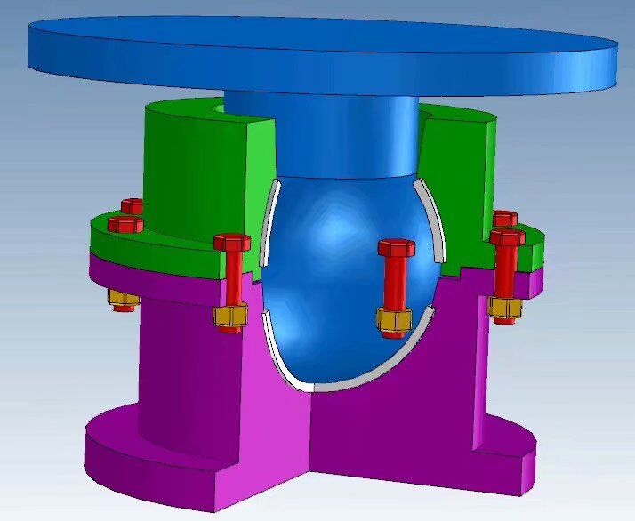 7、支座通過(guò)球面?zhèn)髁,不出現(xiàn)力的縮頸現(xiàn)象,作用在上、下結(jié)構(gòu)的反力比較均勻;